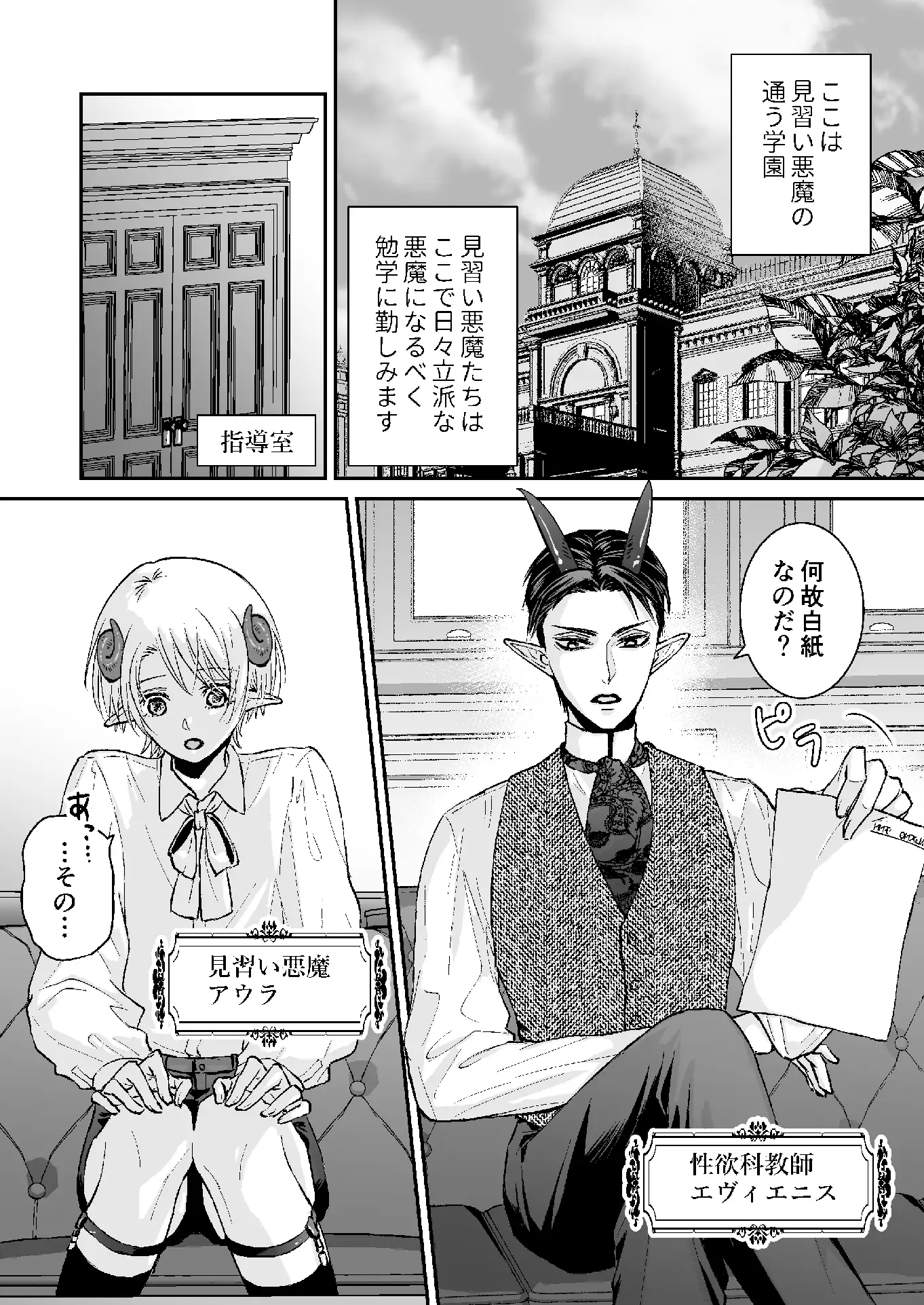 恥ずかしがり屋の見習い悪魔「アウラ」は、性欲科の先生「エヴィエニス」の授業で出された課題がクリアできずに呼び出されました。
