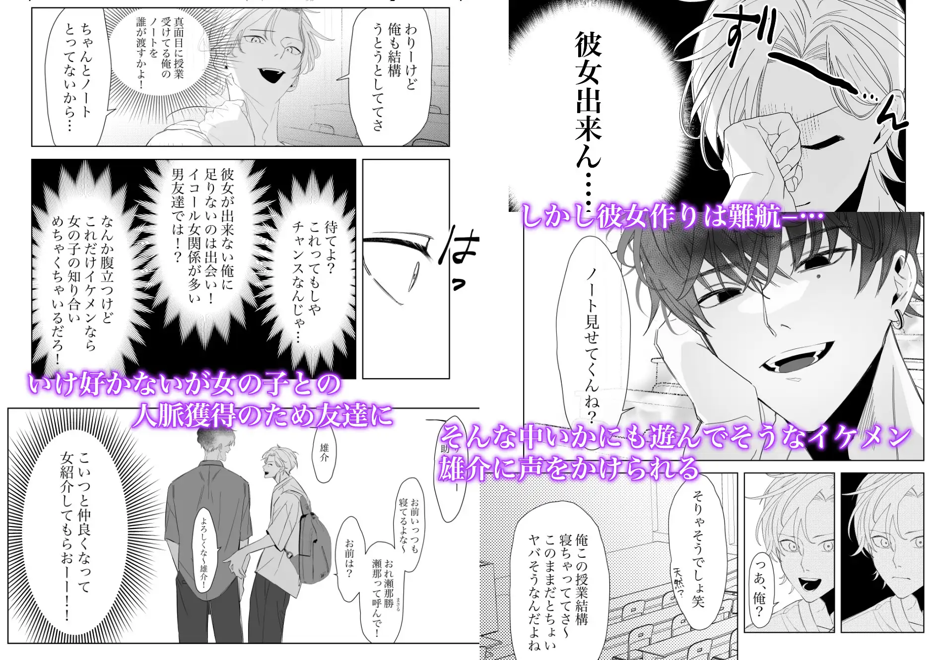 イケメンゲイ×ノンケ童貞のBLエロ漫画で、女性との脱童貞でなく、男性にアナル処女を奪われるのが先になり、びゅるびゅるとトコロテン射精まで!!